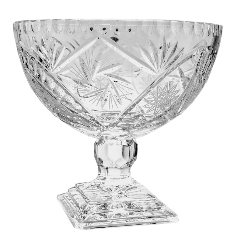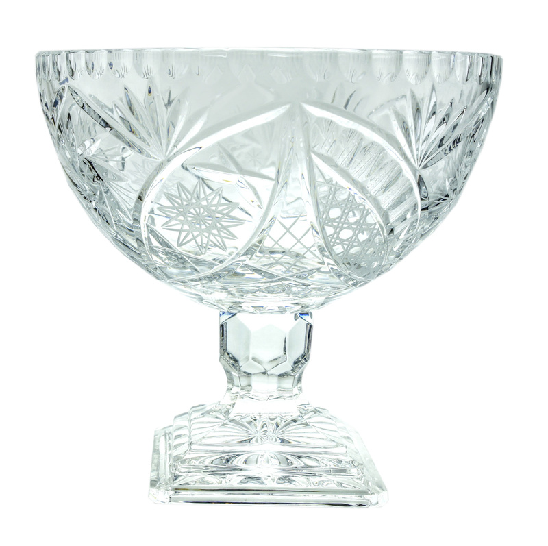 Our product is made from the highest quality crystal glass containing 24% lead oxide, ensuring not only beauty but also health safety. With an impressive height of 25 cm and a width of 25 cm, the crystal legged bowl presents itself perfectly with its elegant millwork design.