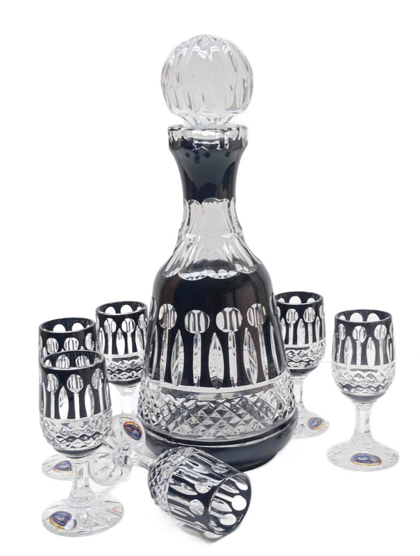 The black crystal glass set with carafe is the ideal choice for those who wish to infuse elegance and sophistication into the art of serving drinks. Made from the highest quality crystal with 24% PbO content, the set consists of six 30ml glasses and one stylish 400ml carafe. Its deep black colour adds a unique touch to any setting, making it the perfect accessory for special occasions such as parties, anniversaries or family celebrations. The hand-decoration of each piece in the set accentuates the uniqueness and precision of the workmanship, making it a great gift for loved ones and an elegant accent for any table. Enjoy not only the taste of your favourite beverages, but also their aesthetic presentation, which will introduce you to a world of luxury and refined style.Do you need help? Do you have any questions?Ask a question and we'll respond promptly, publishing the most interesting questions and answers for others.