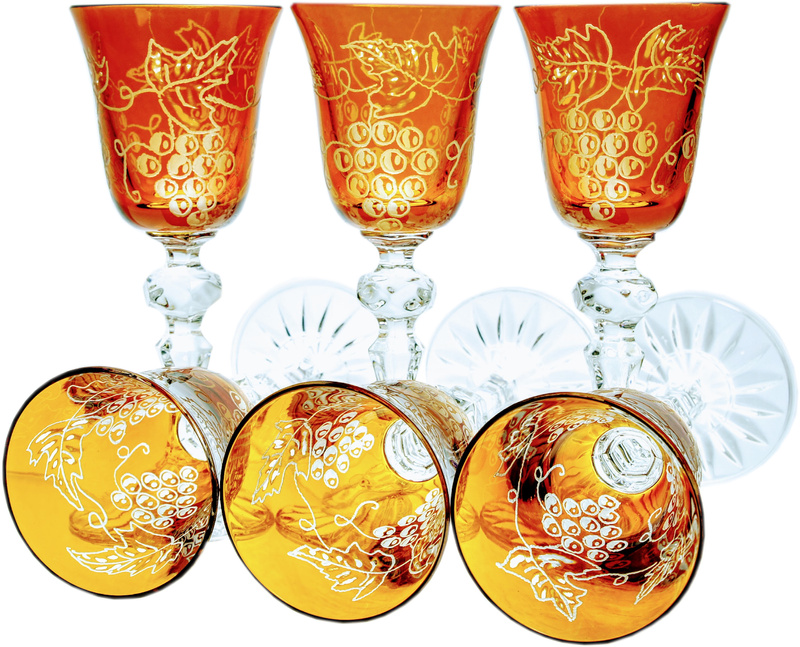 Crystal amber sherry glasses with engraved grape motif 60 ml