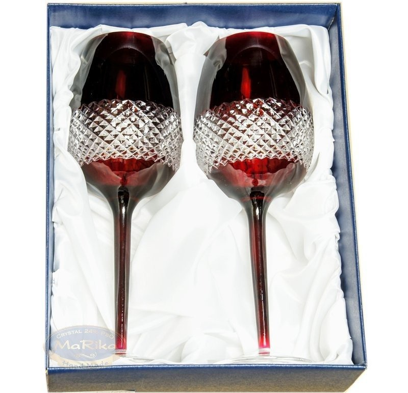 Beauty is in simplicity, and true elegance is best in a classic version. A set of hand-painted crystal glasses for red wine, packed in a decorative box, is an idea for the perfect gift for someone special. Kiln fired for color durability and safety of use, they are made of the highest quality crystal glass by our Decorating Masters. The captivating pattern delights with shades of red reflected in the crystal. Perfect to celebrate special occasions for two.