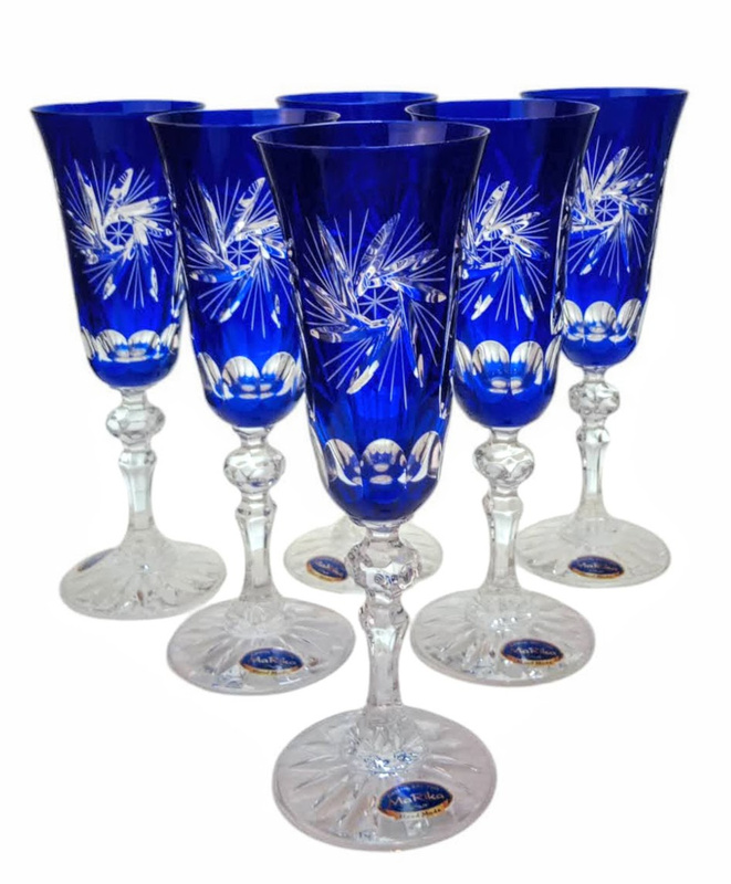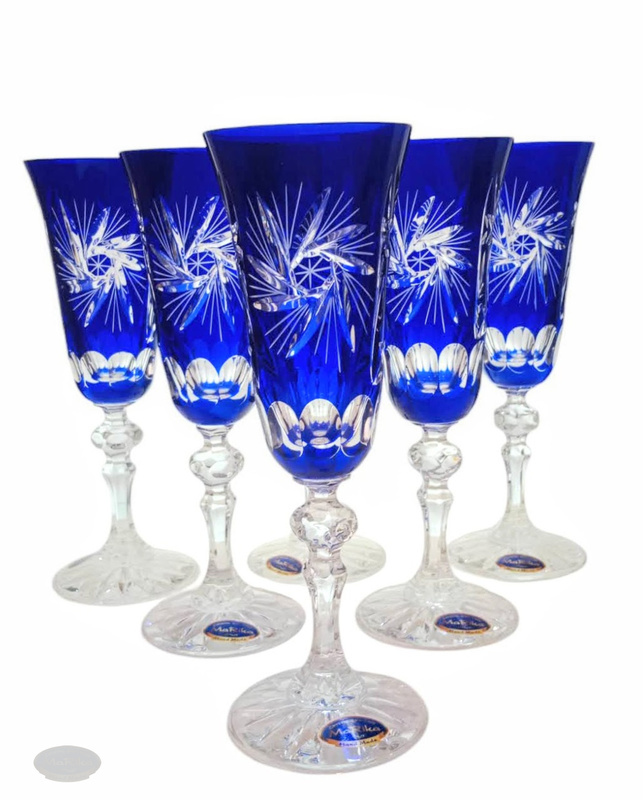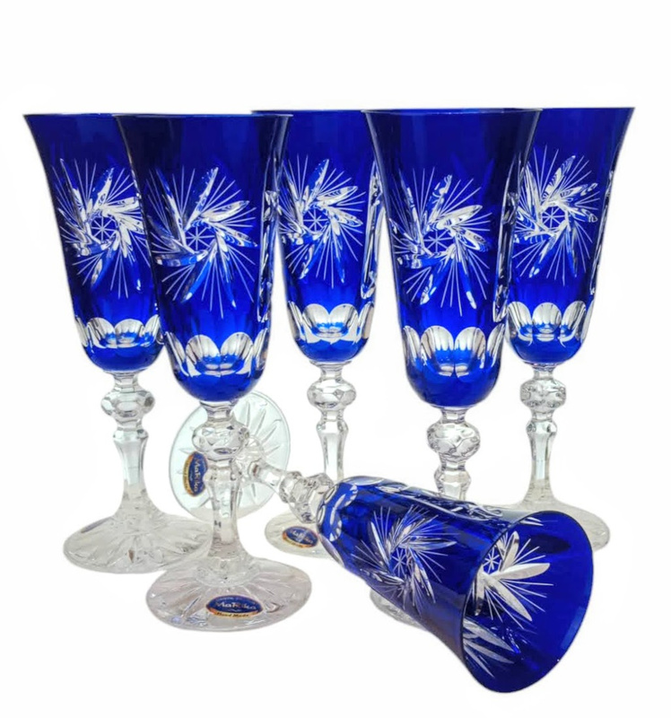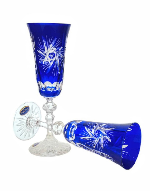 Kobaltowe kryształowe kieliszki do szampana 150 ml Młynek Oliwka
