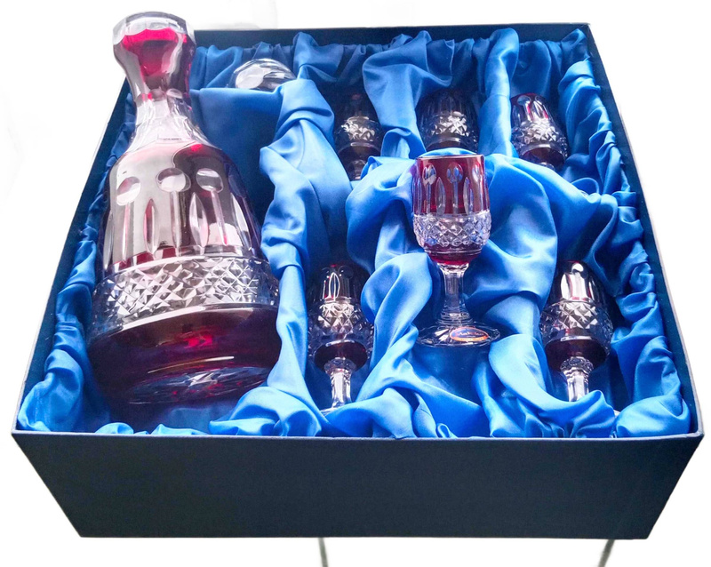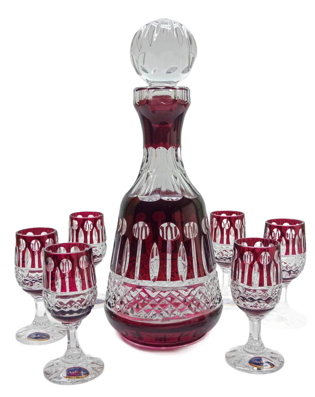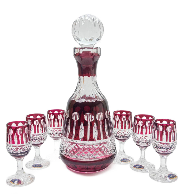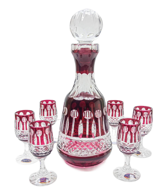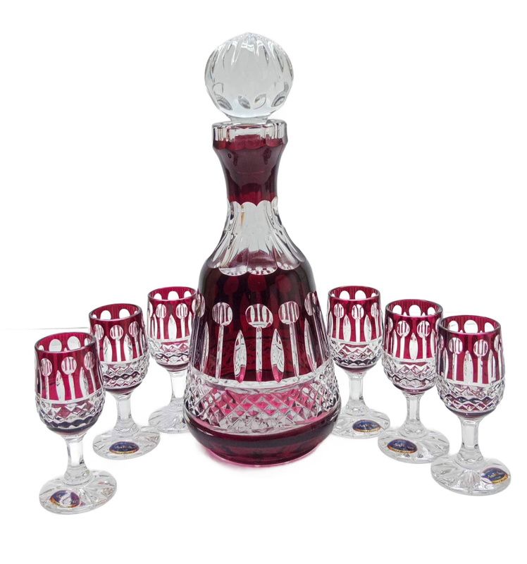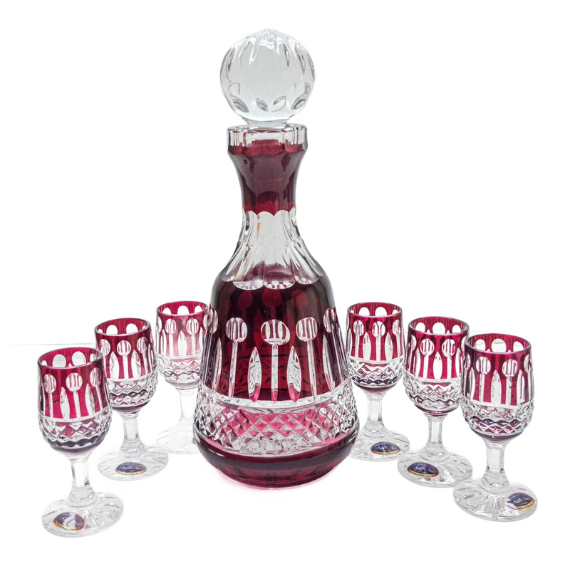 - Juego de vodka Decantador 400 ml Vasos 25 ml Color: Rubí Diseño: Francés Marca: MaRika