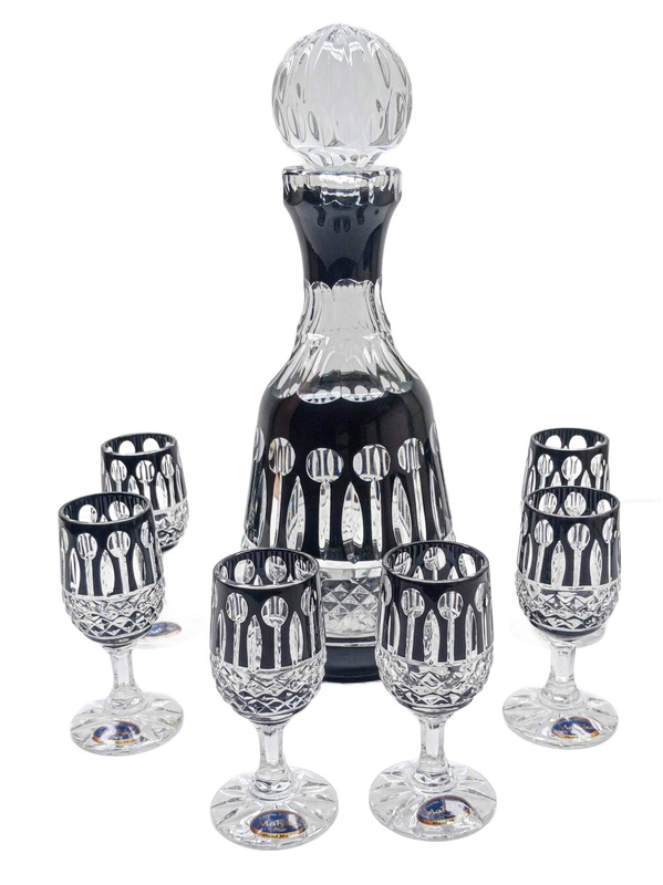• Juego de vodka Decantador 400 ml Vasos 25 ml Color: Negro Diseño: Francés Marca: MaRika