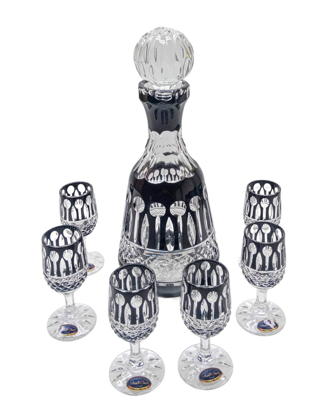 El juego de vasos de cristal negro con jarra es la elección ideal para quienes desean infundir elegancia y sofisticación al arte de servir bebidas. Fabricado en cristal de la más alta calidad con un contenido del 24% de PbO, el juego consta de seis vasos de 30 ml y una elegante jarra de 400 ml. Su profundo color negro añade un toque único a cualquier ambiente, convirtiéndolo en el accesorio perfecto para ocasiones especiales como fiestas, aniversarios o celebraciones familiares. La decoración a mano de cada una de las piezas del juego acentúa la singularidad y precisión de su elaboración, convirtiéndolo en un magnífico regalo para sus seres queridos y un elegante acento para cualquier mesa. Disfrute no sólo del sabor de sus bebidas favoritas, sino también de su estética presentación, que le introducirá en un mundo de lujo y estilo refinado.